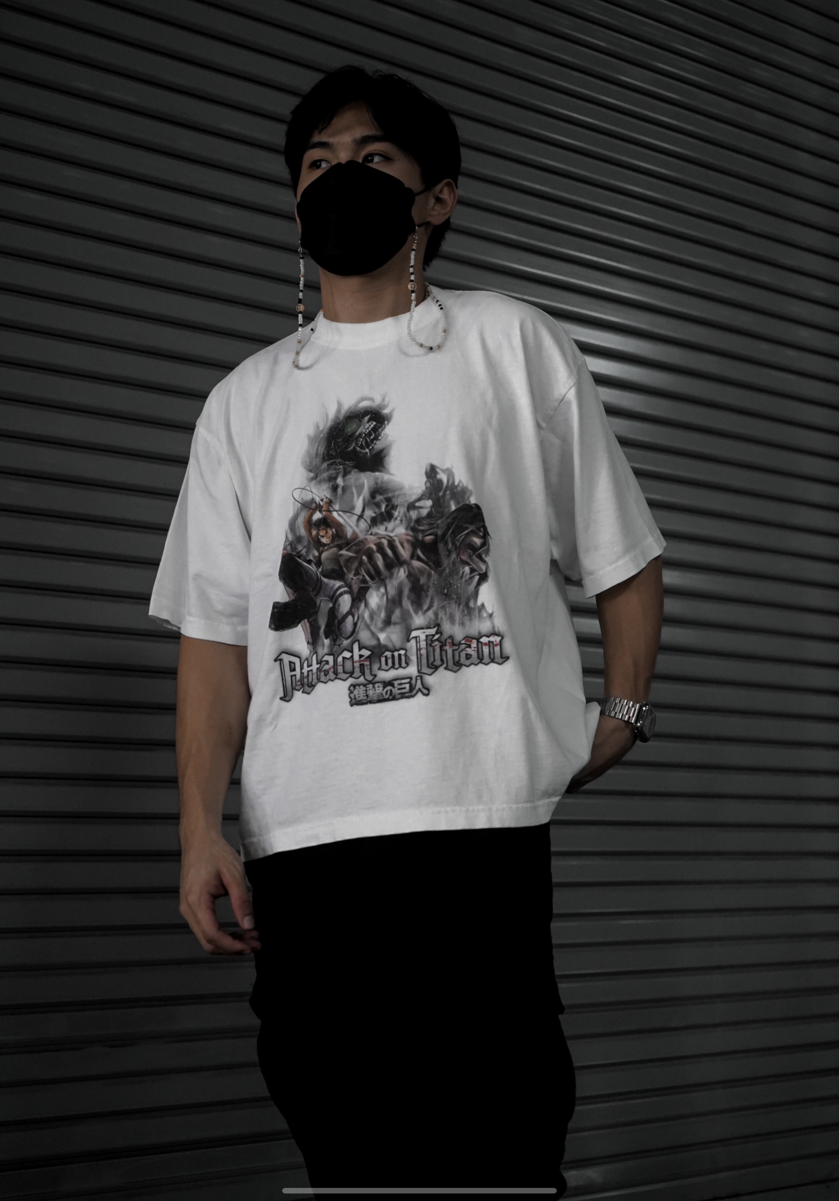 This design features Even Yeager and Attack Titan. The design also features Titan in black and white with his eye highlighted. Get your tees now to prepare yourself for ArtScience Museum, Attack on Titan: The Exhibition!