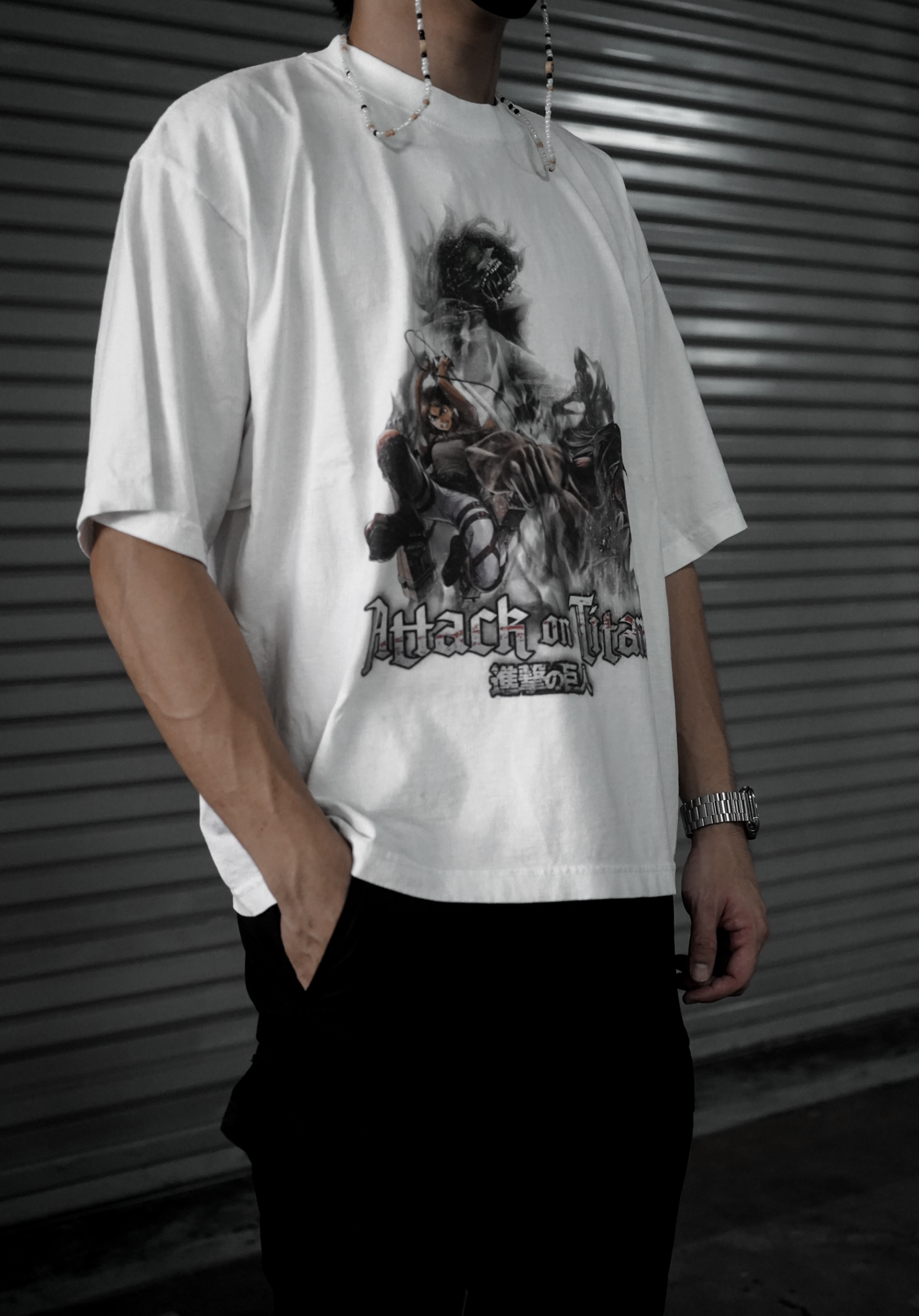 AOT Even Yeager Vintage Inspired T-Shirt is made from Vintage White Wash, 100% cotton and features a bootleg vintage design.